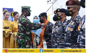 Selesai tradisi penyabutan di dermaga, kegiatan dilanjutkan dengan acara penyambutan Wagub AAL, Wakil Komandan Lantamal XIII Tarakan serta forkopimda di Ball Room KRI Bima Suci oleh Komandan Satgas KJK 2021 dan Palaklat KJK Taruna AAL tahun 2021.