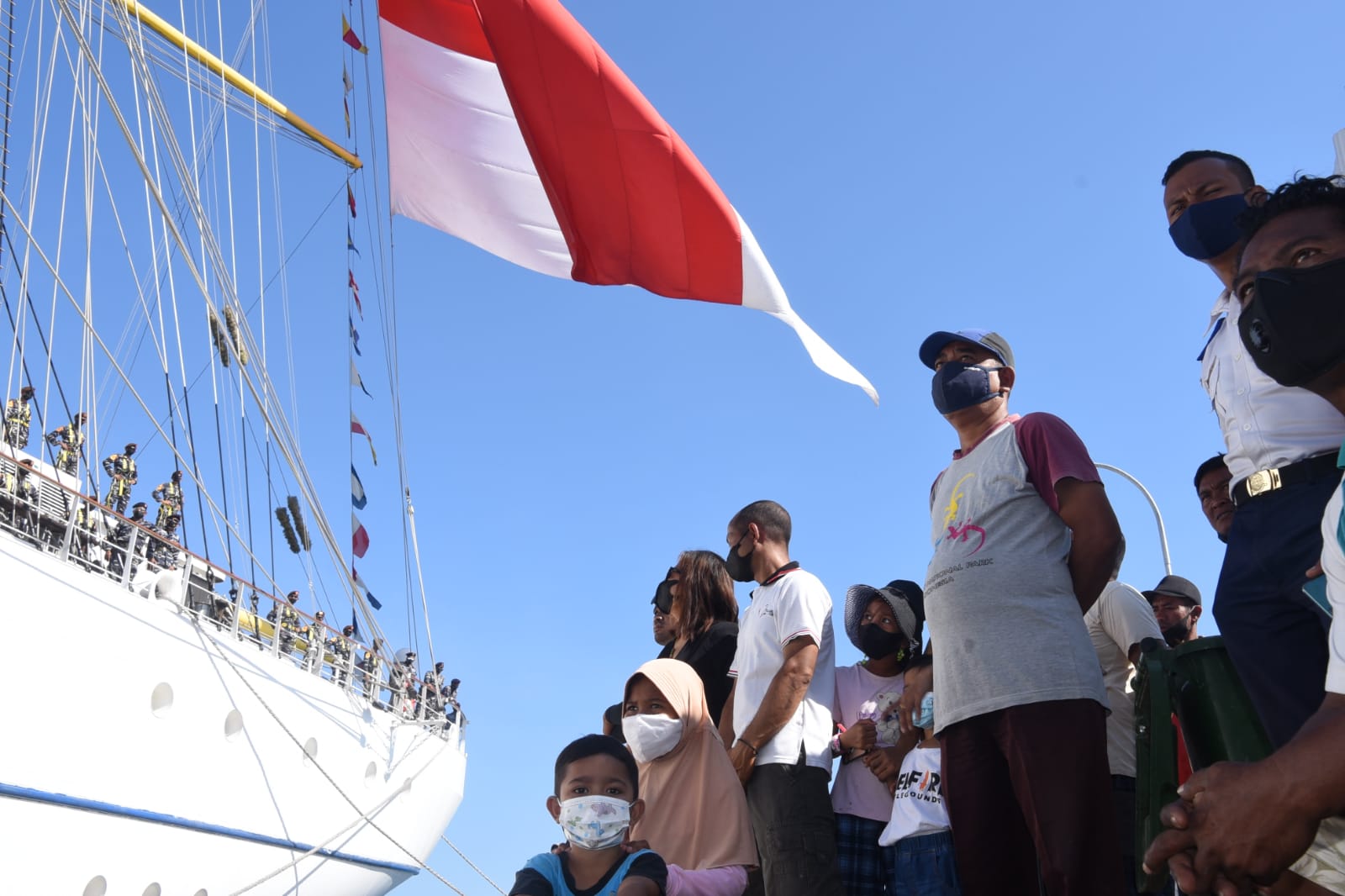 Kedatangan Taruna AAL yang melakukan aksi Parade Roll di atas tiang-tiang KRI Bima Suci disambut hangat masyarakat setempat. Tampak hadir menyambut di dermaga, Ketua DPRD Kab. Mabar, Matius Hamsi, Ban Asisten II Kab. Mabar, Martinus, Kakesbangpol Paulus Lasa, Danlanal Labuan Bajo Mayor Laut (KH) Budhi Purwoto, S.T., M.T., Pabung Kodim 1612/Manggarai, Mayor Inf Suparno Hadi, Kapolres Kab. Manggarai Barat Kompol Eliana Papote S.I.K.M.M., dan Ibu-ibu Jalasenastri Lanal Labuan Bajo.