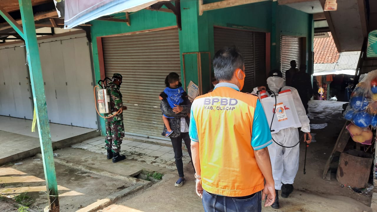 Diawali Apel Bersama di halaman Kantor Kecamatan Dayeuhluhur, Kabupaten Cilacap, Aparat gabungan yang terdiri dari anggota TNI, Polri, Satpol PP, BPBD dan Damkar ini menyasar ke sejumlah wilayah terutama desa yang warganya terkena Covid-19.