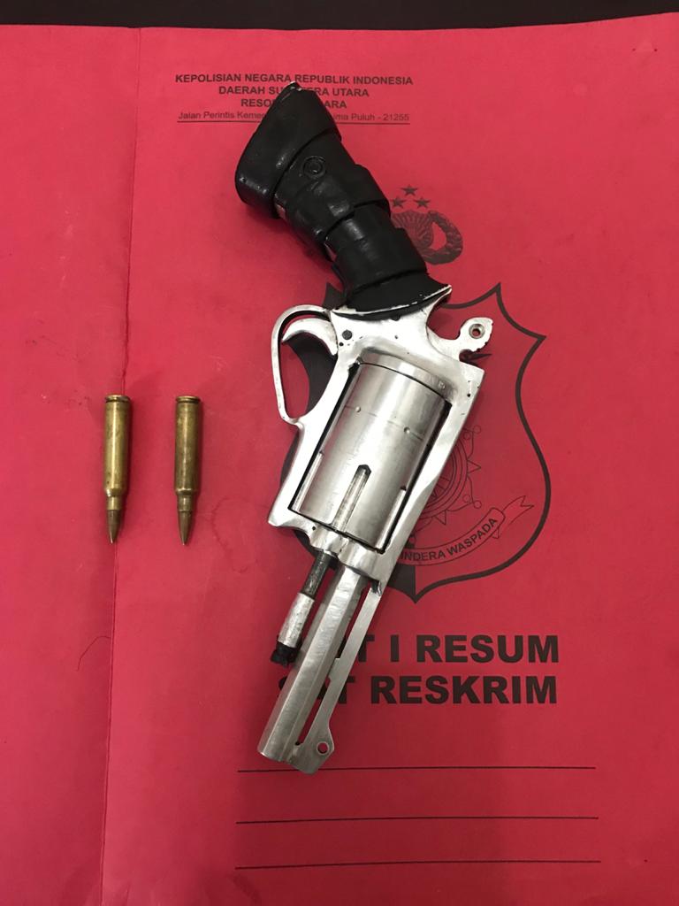 Setelah dilakukan penggeledahan dikamar tidurnya ditemukan 1 (Satu) pucuk senjata api rakitan dan 2 (Dua) butir amunisi. Selanjutnya kasus tersebut diserahkan ke Sat Reskrim Kepolisian Resor Batu Bara.