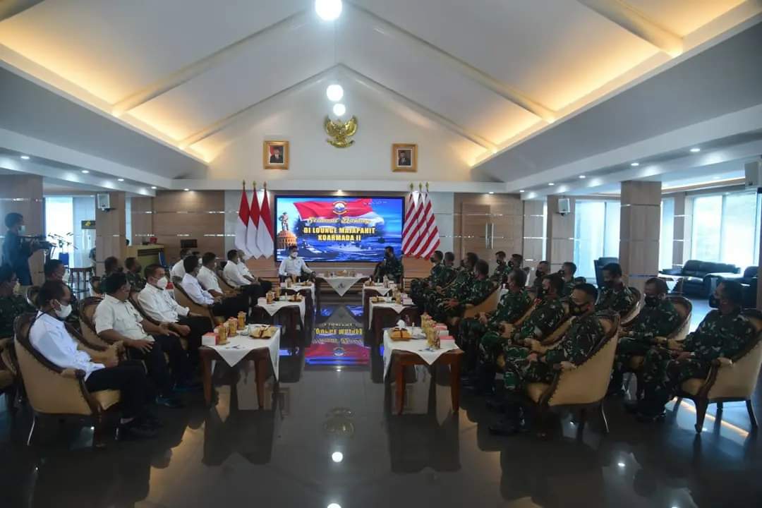 Pada kesempatan tersebut Pangkoarmada II yang didampingi para Pejabat Utama Koarmada II, mengucapkan terima kasih dan selamat datang kepada tim. Melalui kunjungan ini Pangkoarmada II berharap dapat meningkatkan hubungan kerja sekaligus menjadi sarana evaluasi kinerja Koarmada II.