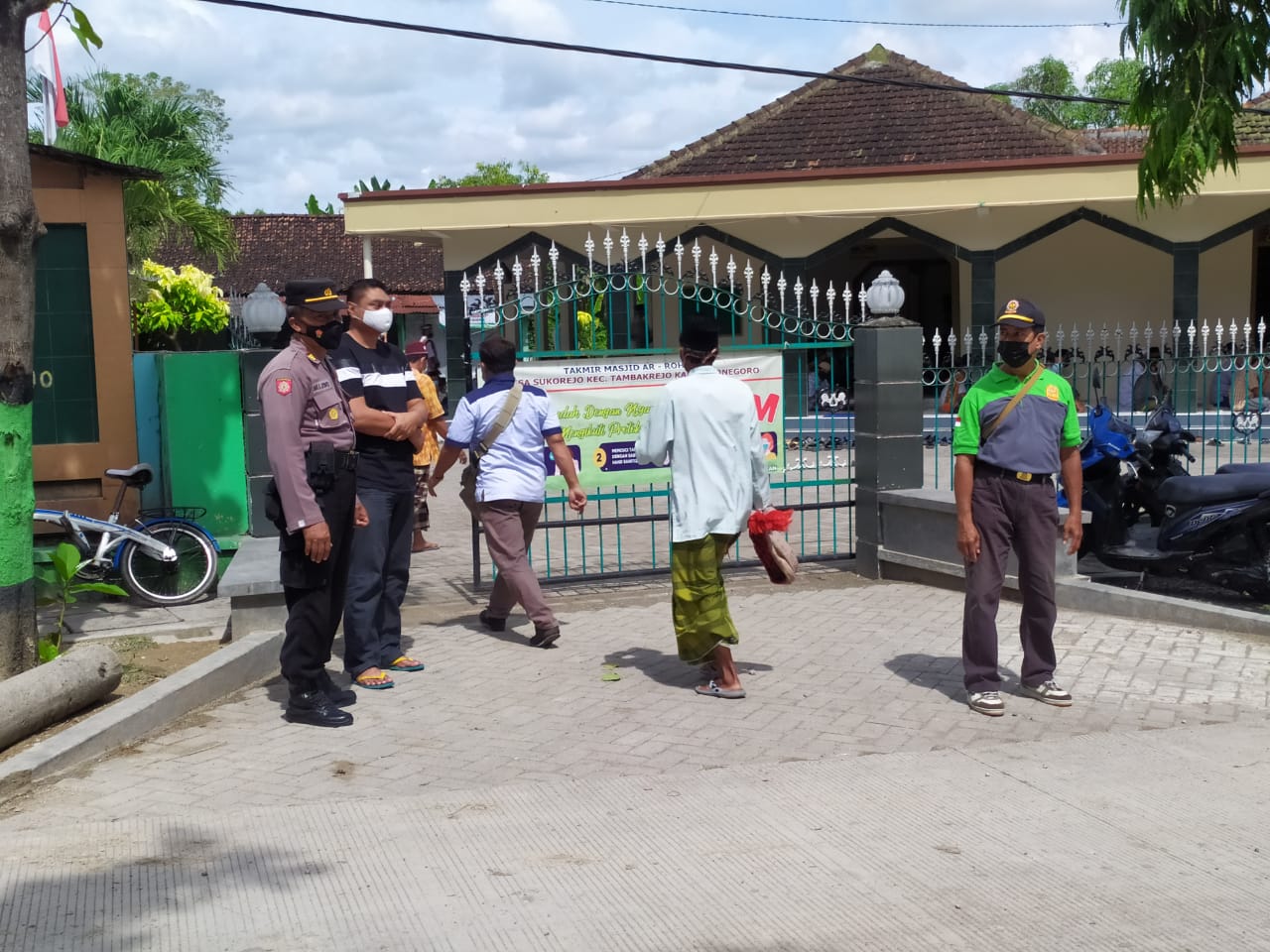 Dengan tujuan untuk memutus mata rantai penularan virus Corona atau Covid-19 di tempat ibadah dengan menerapkan batas jarak antara jama’ah didalam Masjid dan wajib menggunakan masker serta mencuci tangan menggunakan handsanitizer, serta dalam rangka penegakan disiplin protokol kesehatan penanganan Covid-19 di wilayah Kecamatan Tambakrejo Khususnya.