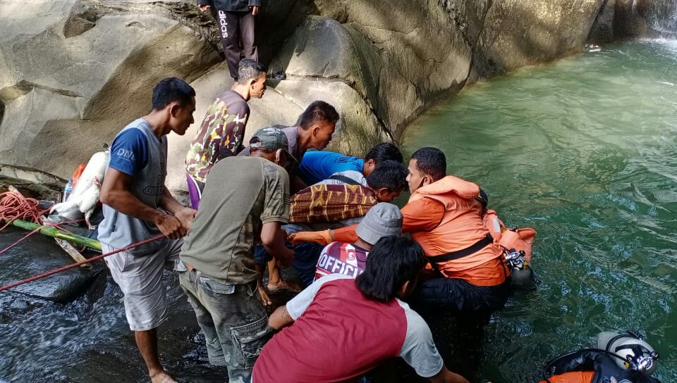 BREBES | MASPOLIN.ID – Tim SAR gabungan berhasil menemukan Dasirun, korban tenggelam di Curug Rambu Kasang yang berlokasi di Dusun Grogol, Desa Ciseureuh, Kecamatan Ketanggungan, Kabupaten Brebes, Jawa Tengah, Senin (15/6/2020).