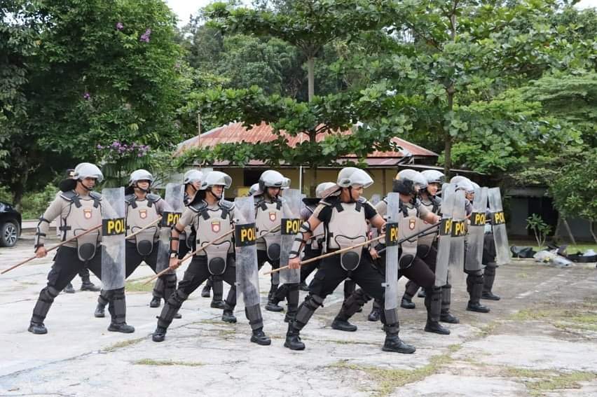 Lamandau – Maspolin.id // Jajaran Satsamapta dan Gabungan Staf Personel Polres Lamandau, Polda Kalteng melaksanakan program rutin Satsamapta yakni pelatihan Pengendalian Massa (Dalmas) yang digunakan satuan Polri dalam menghadapi unjuk rasa.