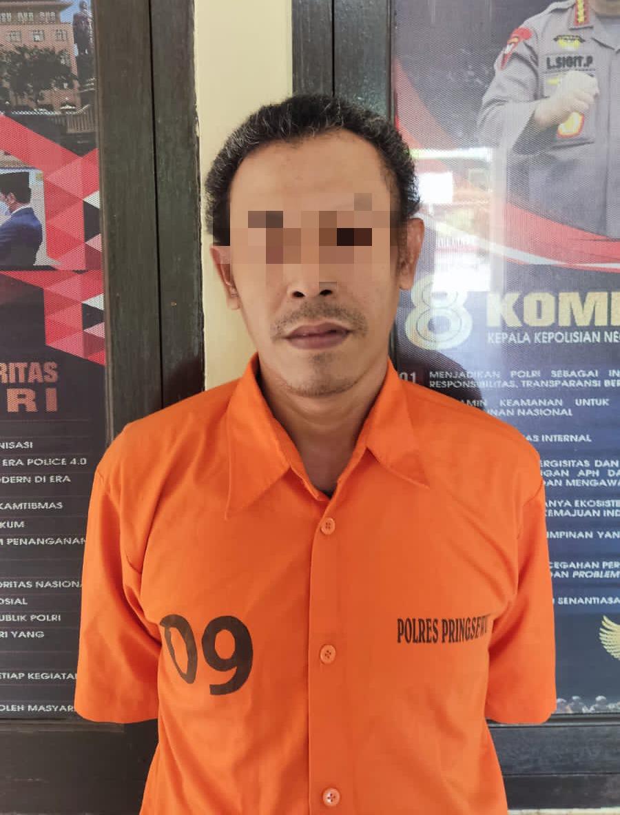 Pelaku berinisial AM (37) warga Dusun Sumberdadi Pekon Margodadi Kecamatan Ambarawa Kabupaten Pringsewu diamankan Polisi dirumahnya pada Jumat (18/11/22) sekira pukul 20.00 Wib.