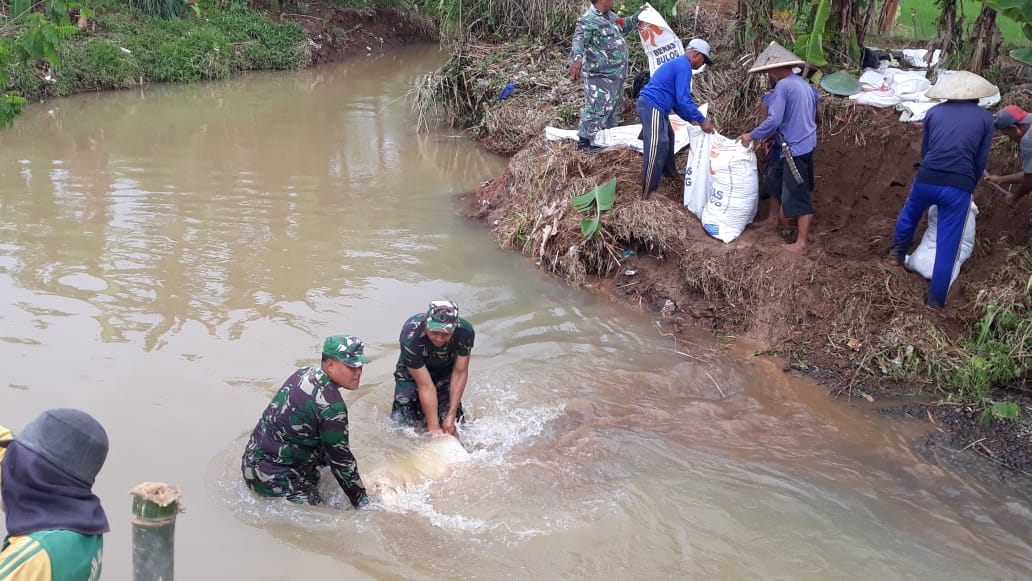 Maspolin.id, Cilacap – Anggota Koramil 13/Majenang bersama 49 orang warga Desa Salebu melaksanakan Karya Bakti pembendungan Tanggul Sungai Ciglagah di Blok Salebu 1 yang jebol dan mengakibatkan banjir di sebagian area persawahan wilayah Blok 1 Dusun Salebu Kecamatan majenang, Kamis (7/1/2021).