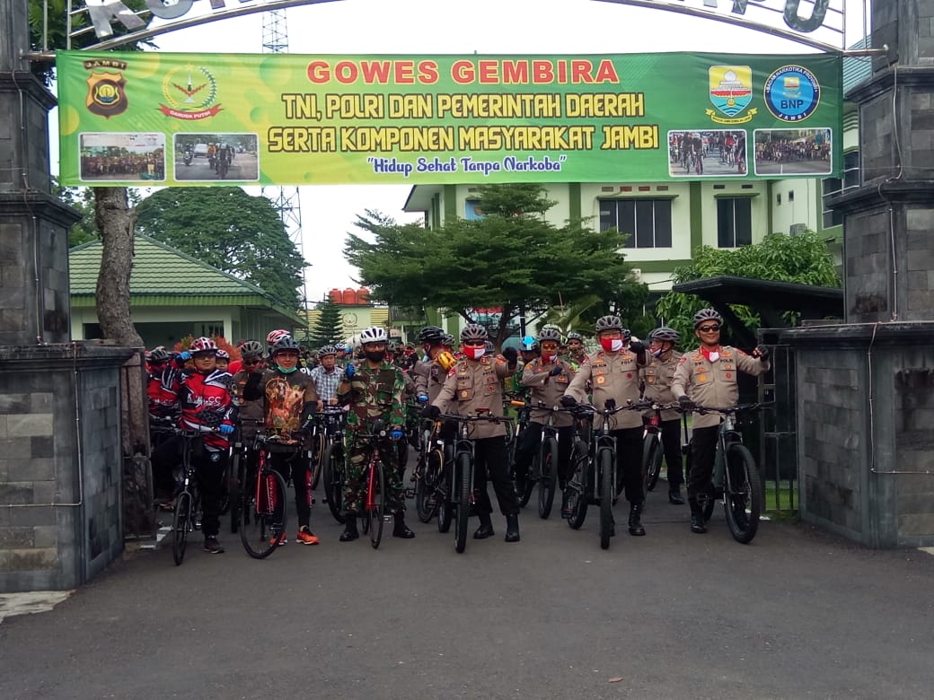Gowes Bahagia yang bertemakan “Hidup Sehat Tanpa Narkoba” juga diikuti oleh Danrem 042/Gapu Brigjen TNI M.Zulkifli,S.I.P,M.M, Kapolda Jambi Irjen Pol Firman Shantyabudi, Waka Polda Brigjen Pol Dul Alim, Wakil Wali Kota Jambi Dr. Maulana, Dandim 0415/BTH Kol Inf J Hadiyanto, Kapolresta Jambi Kombes Pol Dover Christian, Mantan Kapolda Jambi Drs Muchlis AS beserta Pejabat Utama (PJU) Polda Jambi, Dan/Kasat Balak Korem dan Perwira jajaran Korem 042 Gapu dan Masyarakat Komunitas sepada jambi.