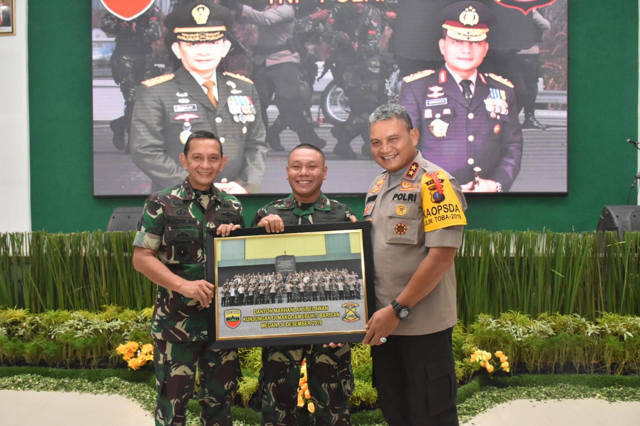 Medan, Maspolin.id—Pangdam I/BB, Mayjen TNI MS Fadhilah didampingi para PJU Kodam I/BB menerima kunjungan Kapolda Sumut, Irjen Pol Martuani Sormin Siregar dan rombongan di Makodam I/BB, Jln Gatot Subroto Km 7,5 Medan, Senin (30/12/2019).