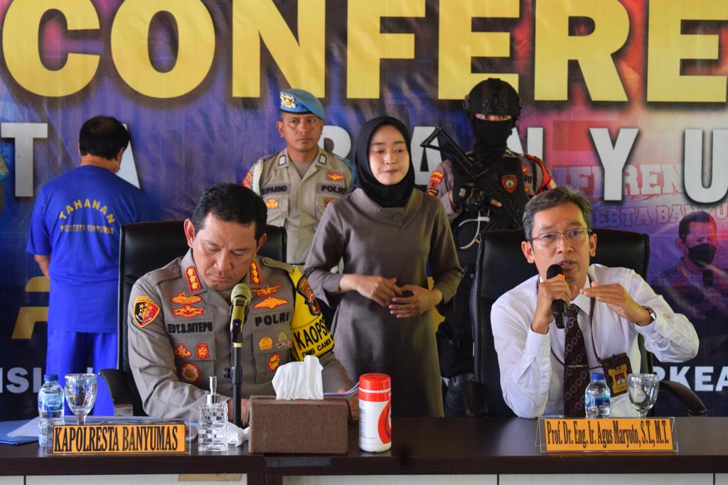 “Kami telah menetapkan pengelola jembatan kaca yang berinisial ES (63) warga Kelurahan Karangpucung, Kec. Purwokerto Selatan, Kab. Banyumas, sebagai tersangka”, kata Kapolresta Banyumas Kombes Pol Edy Suranta Sitepu, SIK, MH, saat konferensi pers di pendopo Polresta Banyumas, Selasa (31/10/23).