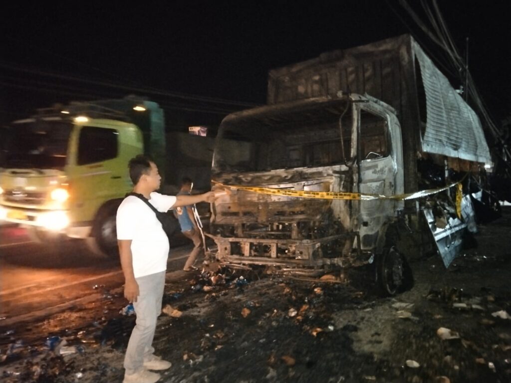Cilacap – Maspolin.id ||Satu unit truk jenis wing bok, habis terbakar beserta barang muatannya berupa permen salah satu produk.