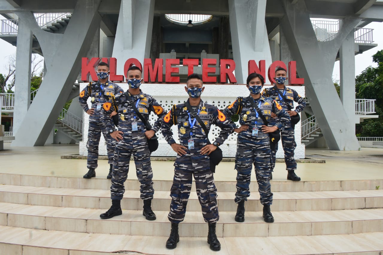 MASPOLIN || Sabang – Taruna Akademi Angkatan Laut (AAL) Angkatan Ke-67, Pengasuh dan ABK KRI Bima Suci yang tergabung dalam Satuan Latih Kartika Jala Krida (Satlat KJK) tahun 2020 mendapat kesempatan untuk berkunjung ke Tugu Nol Kilometer Sabang pada Minggu pagi kemarin.