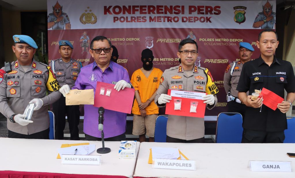 Konferensi tersebut dipimpin oleh Wakapolrestro Depok, AKBP Eko Wahyu Fredian S.I.K, M.M, bersama dengan Kasat Narkoba Polrestro Depok, AKBP Tahan Marpaung S.H, M.M.