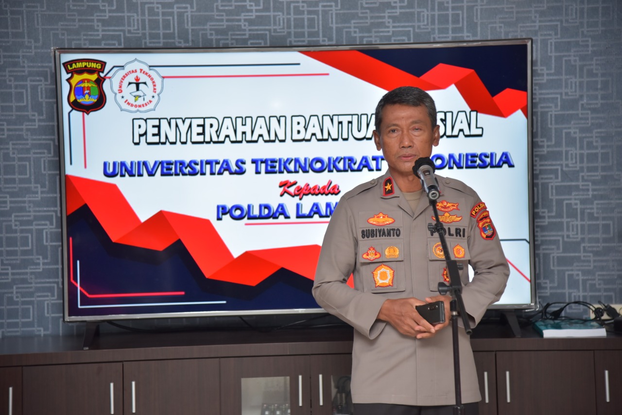 Dalam kesempatan tersebut Rektor Universitas Teknokrat Indonesia menyampaikan permohonan kepada Polda Lampung untuk membantu menyalurkan bantuan berupa paket sembako peduli dampak Covid-19 tersebut kepada masyarakat yang terdampak.