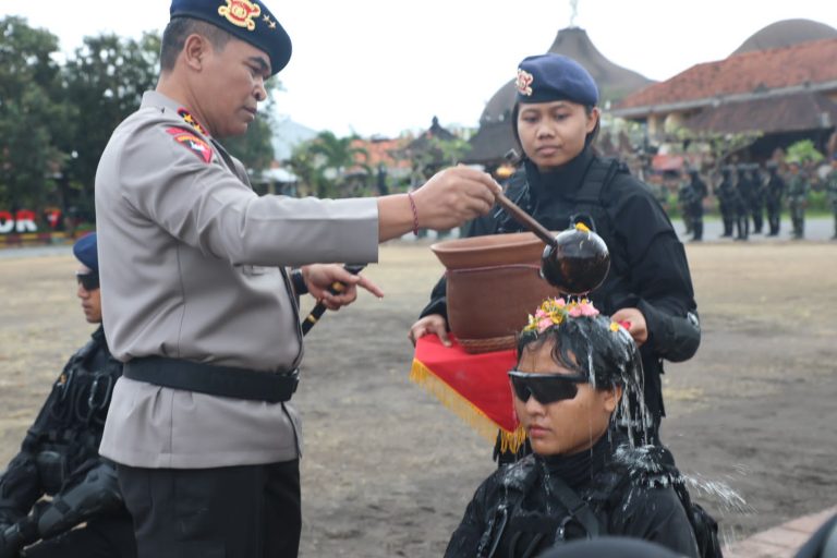 Denpasar- Maspolin.id|| Kapolda Bali Irjen Pol. Ida Bagus Kd Putra Narendra, S.I.K., M.Si pimpin Upacara Penutupan Tradisi Pembaretan Bintara Remaja oleh Korps Brimobda Polda Bali di Lapangan Iptu Soetardjo, Mako Brimob Tohpati, Senin (18-9-2023)