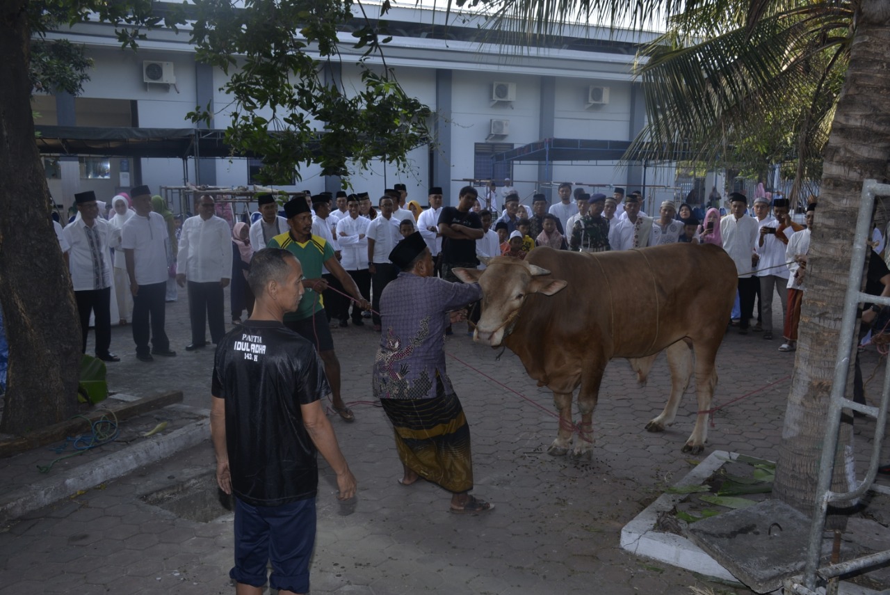 “Syukur alhamdulillah di pagi hari yang insyaallah barokah ini, saya selaku Komandan Lantamal V atas nama keluarga besar Lantamal V dan kelompok pengajian komplek Cepi dengan ini menyerahkan hewan qurban kepada panitia, untuk selanjutnya dibagikan kepada yang berhak,” ujar Danlantamal V.