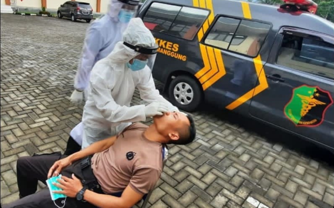 Temanggung,maspolin.id- Sejumlah Personel Polres Temanggung jalani Tes Swab Antigen bertempat di halaman apel Mapolres Temanggung. Jum’at (11-11-2020).