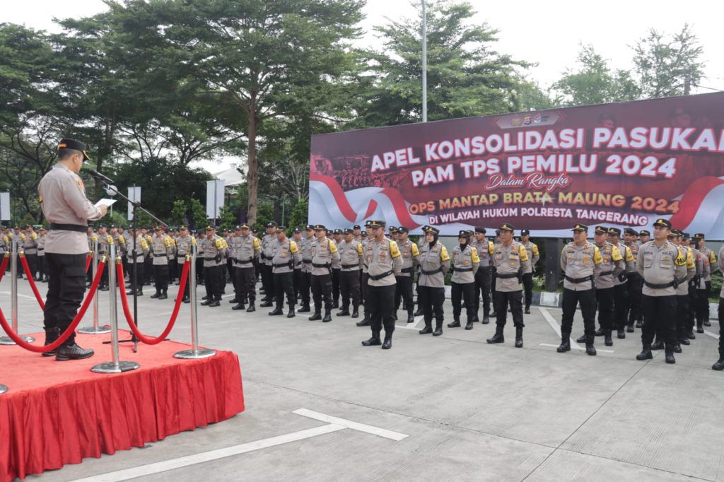 TANGERANG – Maspolin.id|| Kapolresta Tangerang, Kombes Pol Baktiar Joko Mujiono, memimpin apel konsolidasi pasukan pengamanan TPS untuk Pemilu 2024, pada Senin 19 Februari 2024. Apel ini dilakukan guna memastikan keamanan dan kelancaran selama proses pemungutan suara.