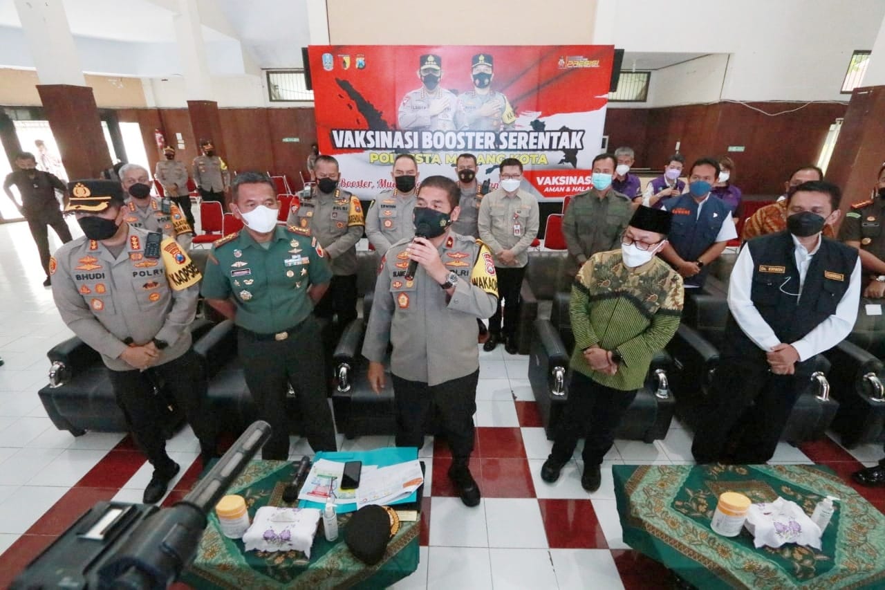 Usai mengikuti vaksinasi massal secara virtual dengan Wakapolri. Brigjen Pol Slamet Hadi Supraptoyo, menjelaskan, bahwa di Malang Kota untuk Vaksin pertama belum memenuhi target, vaksin kedua khususnya lansia juga belum memenuhi target. Demikian vaksin ketiga atau Booster.