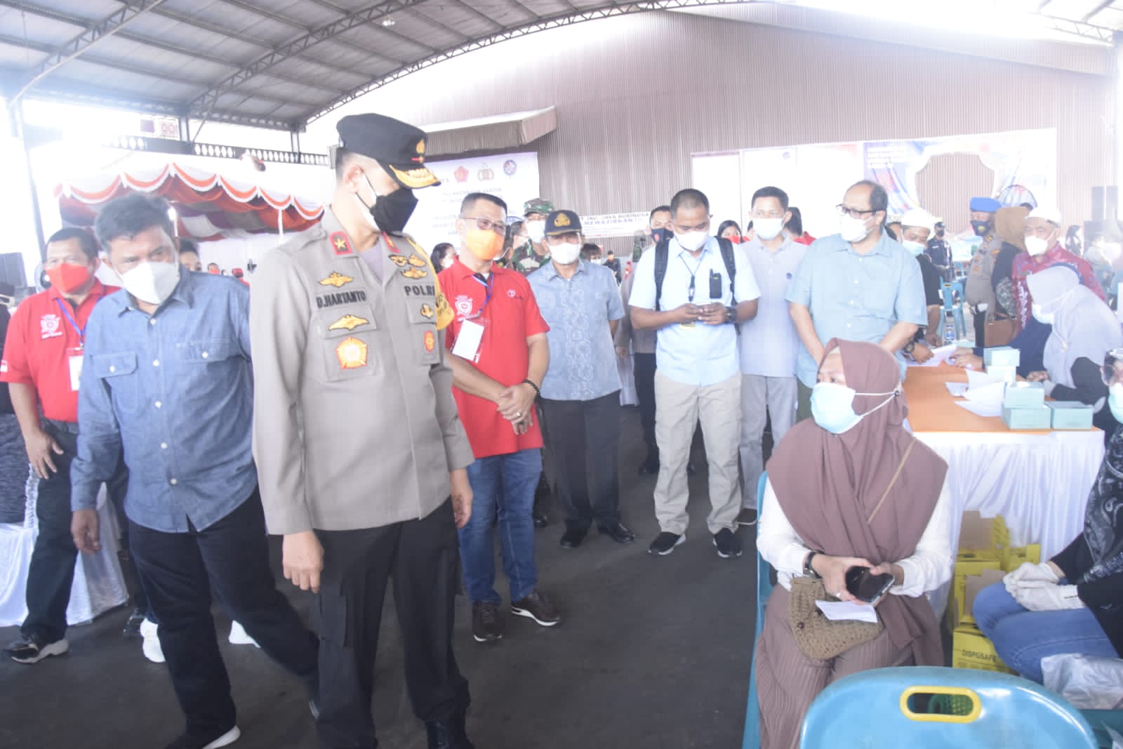 Deliserdang, Maspolin.id—Wakil Kepala Kepolisan Daerah (Wakapolda) Sumatera Utara, Brigjen Pol Dadang Hartanto, meninjau pelaksanaan vaksinasi tahap II di Kabupaten Deliserdang, Sabtu (31/7).