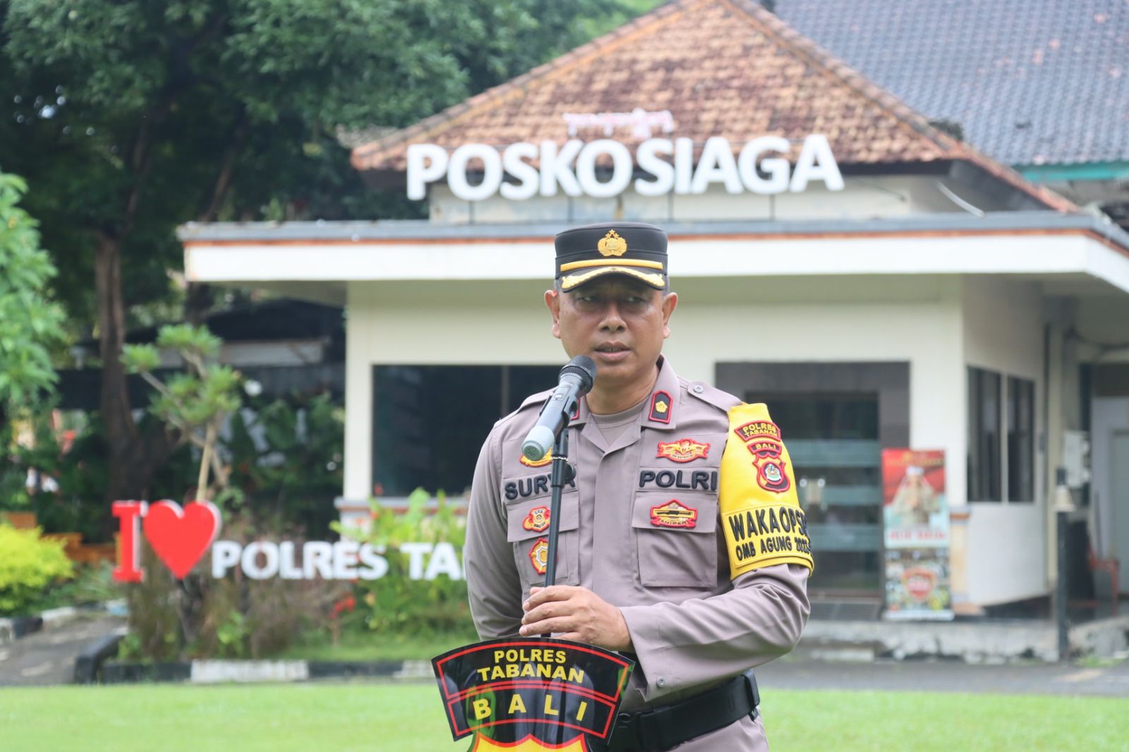 Giat apel OMB dihadiri oleh Kabag Ops Polres Tabanan, Kabag Log Polres Tabanan, Kabag SDM Polres Tabanan, Kabag Ren Polres Tabanan, Para Kapolsek Jajaran Polres Tabanann Para Pejabat Operasi/Kasatgas/Kasub Satgas dan Personil yang terlibat sprint Operasi Mantap Brata Agung 2023-2024 Tahap Kampanye.