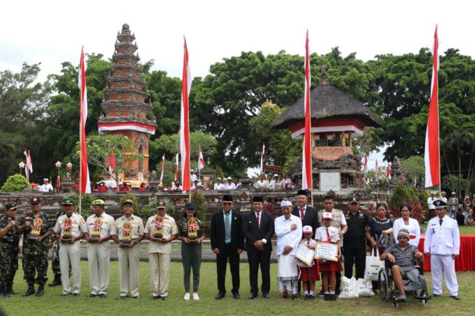 Diakhir acara Pj Gubernur Bali memberikan penghargaan serta bantuan berupa uang pembinaan kepada murid berprestasi dan dan kursi roda kepada para veteran yang mengalami cedera permanen pada saat berjuang melawan penjajah.