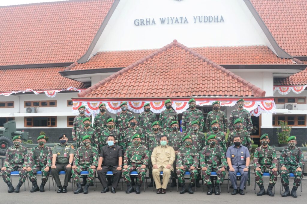 Jakarta, Maspolin.id—Wakil Kepala Staf Angkatan Darat Letjen TNI Moch. Fachrudin, S.Sos. mendampingi Menteri Pertahanan RI Prabowo Subianto memberikan ceramah pembekalan kepada siswa Seskoad Dikreg-59 yang diikuti oleh 451 siswa, bertempat di Ruang Jenderal Gatot Subroto, Seskoad, Bandung, Kamis (13/8/2020).