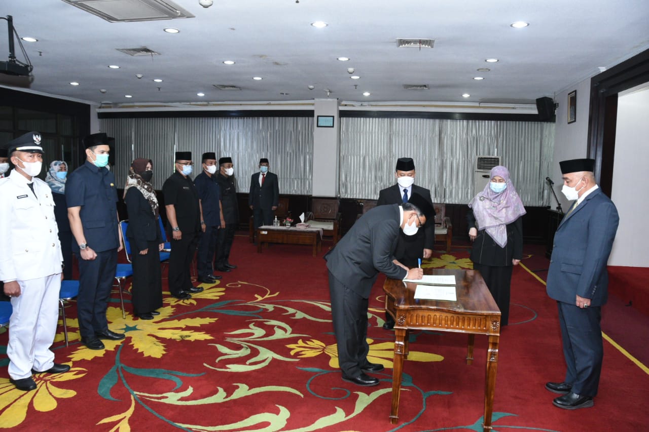 MASPOLIN.ID.-BALAIKOTA, DEPOK- Wali kota Depok, Mohammad Idris melantik lima kepala dinas hasil seleksi lelang jabatan tahun 2021, diantaranya Hj. Citra Indah Yulianty menjadi Kadis Pekerjaan Umum dan Penataan Ruang (PUPR), Eko Herwiyanto Kadis Perhubungan, Mangguluang Mansyur Kadis Penanaman Modal Perizinan Terpadu Satu Pintu (PMPTSP), Arry Liziawaty Kadis Kesehatan, dan Wahid Suryono Kepala Badan Keuangan Daerah (BKD), serta 54 pejabat baru lainnya yang berlangsung di Balai Kota Depok, Rabu (24/12/2021).