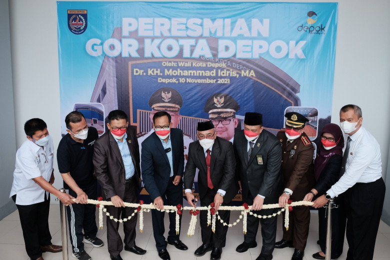 MASPOLIN.ID.-DEPOK- Wali Kota Depok Mohammad Idris didampingi Wakil Wali Kota Depok Imam Budi Hartono serta didampingi Ketua DPRD Kota Depok, Kajari Depok meresmikan Gelanggang Olahraga (GOR) Kota Depok Jalan Boulevard Grand Depok City, Rabu (10/11/2021).