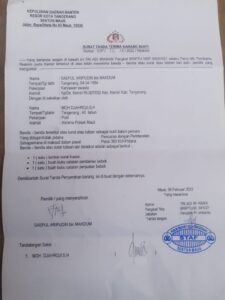 Dan korban telah menerima STTBL.Berdasarkan laporan polisi Nomor:LP/16/B/II/2022/sek.Mauk/Polres Kota Tangerang/Polda Banten.