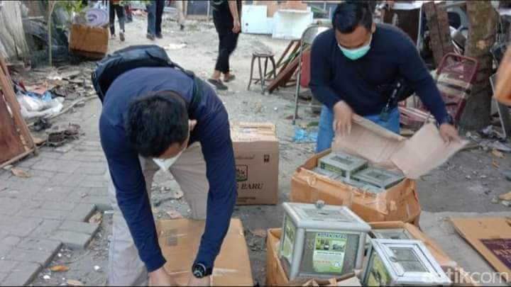 Apa yang ada di dalam gudang itu membuat semua orang terdiam. 500 buah kotak amal yang biasanya disebar di jalan-jalan, di minimarket dan dibawa keliling. Persis sama seperti yang didapatkan Densus 88 di Tanjung Balai. Juga ada brosur untuk donasi.
