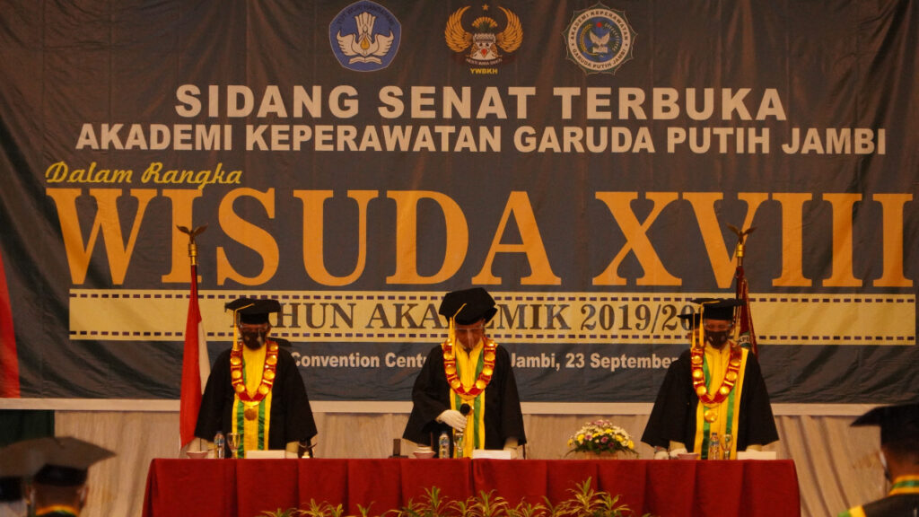 Acara tersebut juga di hadiri oleh Kepala L2Dikti wilayah X Prof. Dr. Herri, MBA, Kepala Dinas Kesehatan Provinsi Jambi Raflizar, SKM,M.KES, Direktur AKPER Garuda Putih Lettu Ckm Ns.Bettruanto, S.Kep, Ketua DPW PPNI Provinsi Jambi, serta orang tua Wisudawan/Wisudawati.