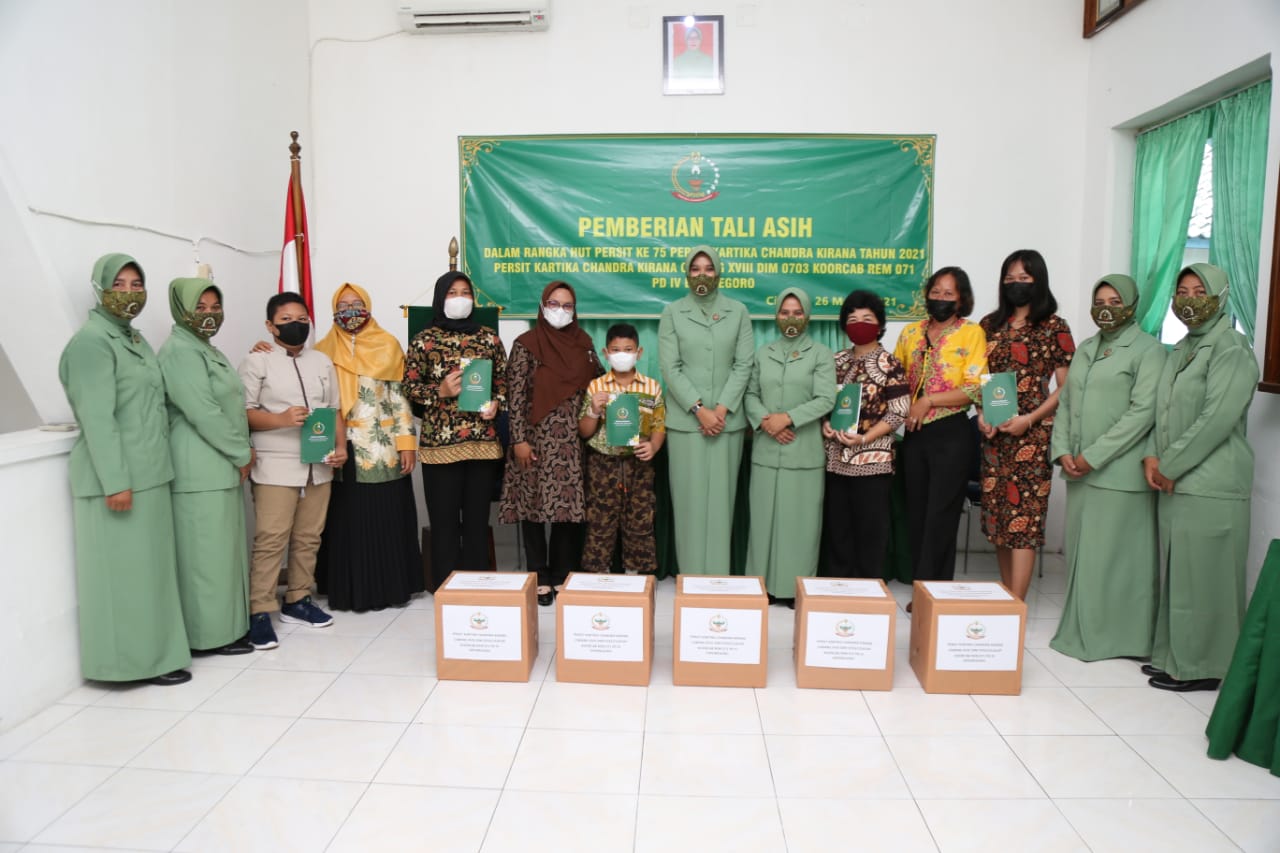 “Kami dari Persit menggelar kegiatan ini sebagai wujud rasa cinta kasih kepada keluarga besar Kodim 0703 Cilacap dalam hal ini para warakawuri beserta anak yatim yang saat ini tengah berjuang melanjutkan cita-cita suami mereka yang telah meninggal dunia,” katanya.