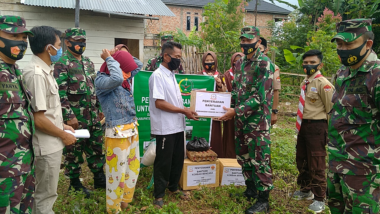 Hal ini disampaikan oleh Dandim 0417/Kerinci Letkol Czi Fitriadi ST, sela-sela kesibukannya, “hari ini Rabu (15/7/2020) kami memberikan berupa Sembako kepada warga yang terkena bencana kebakaran, ini wujud Kepedulian”, terangnya.